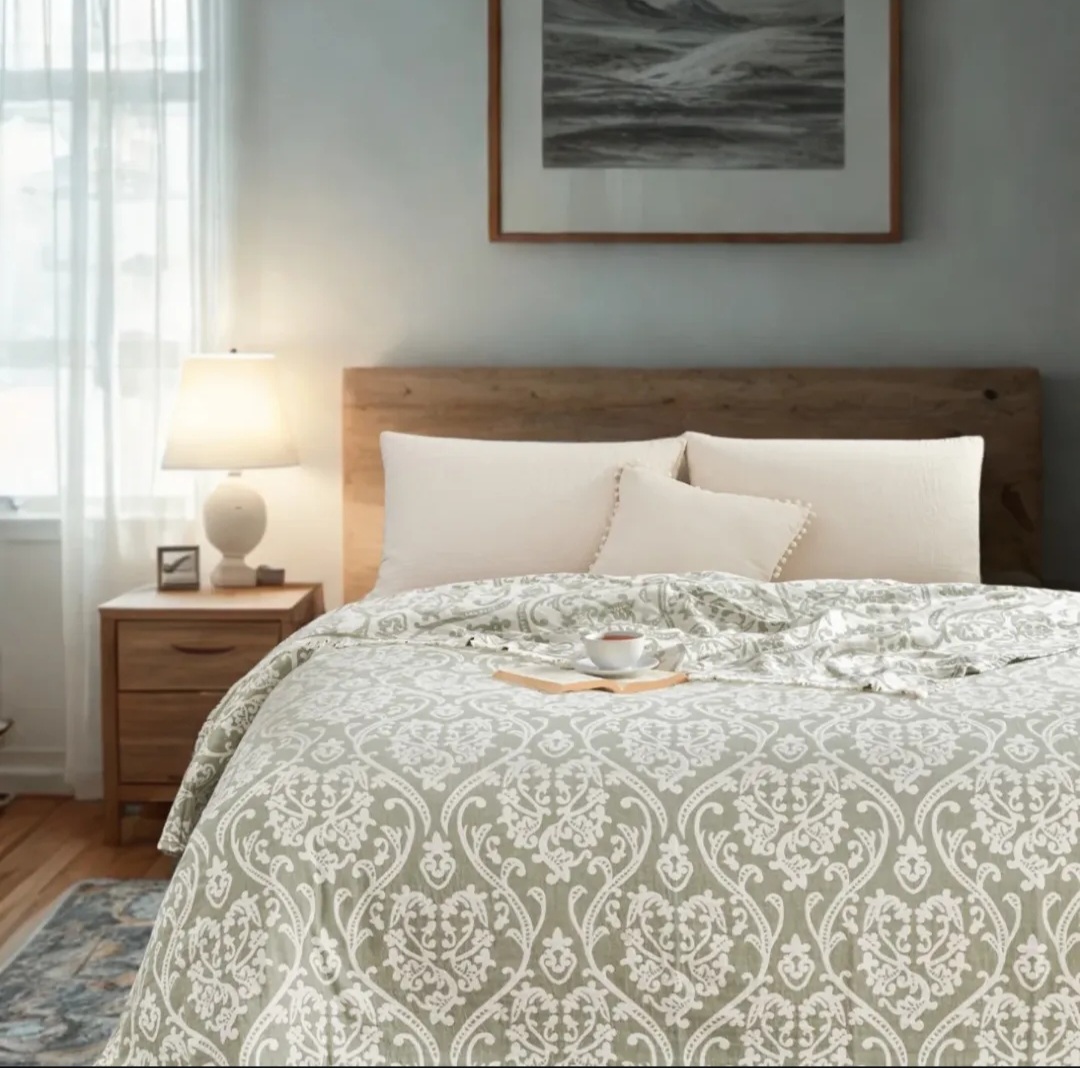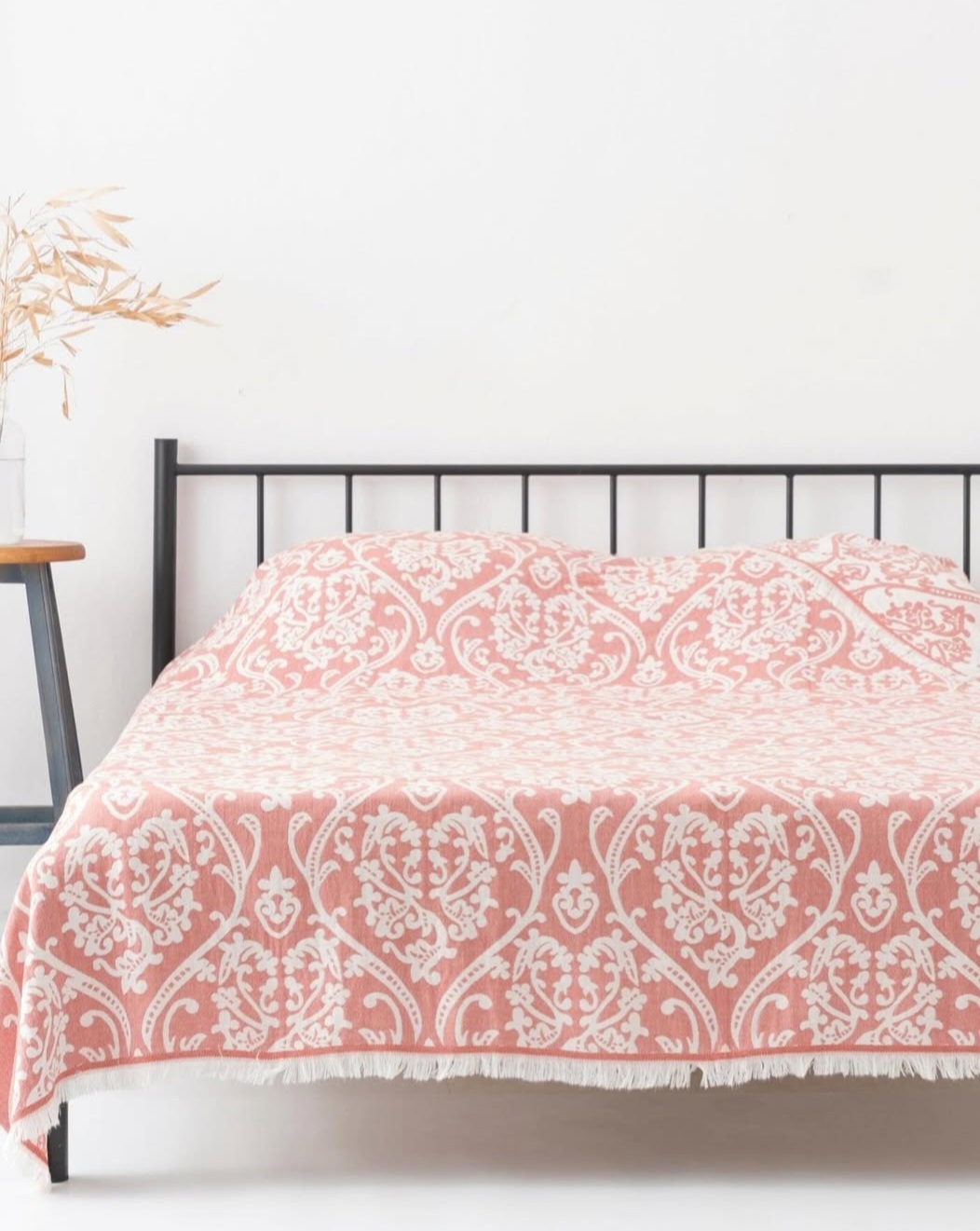 Damask desenli jakarlı pikemiz ile yatak odanızı yenileyin ve zarif görünümün tadını çıkarın. Hem dekoratif hem de işlevsel bu ürün, uyku konforunuzu bir üst seviyeye taşır.