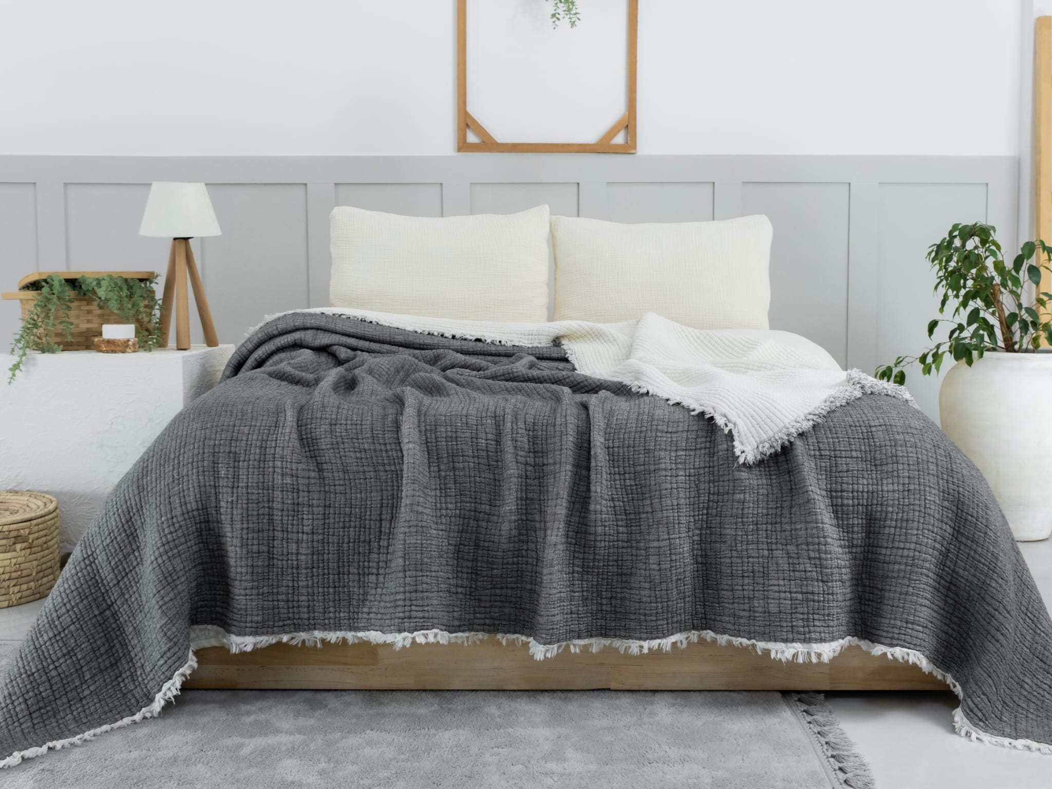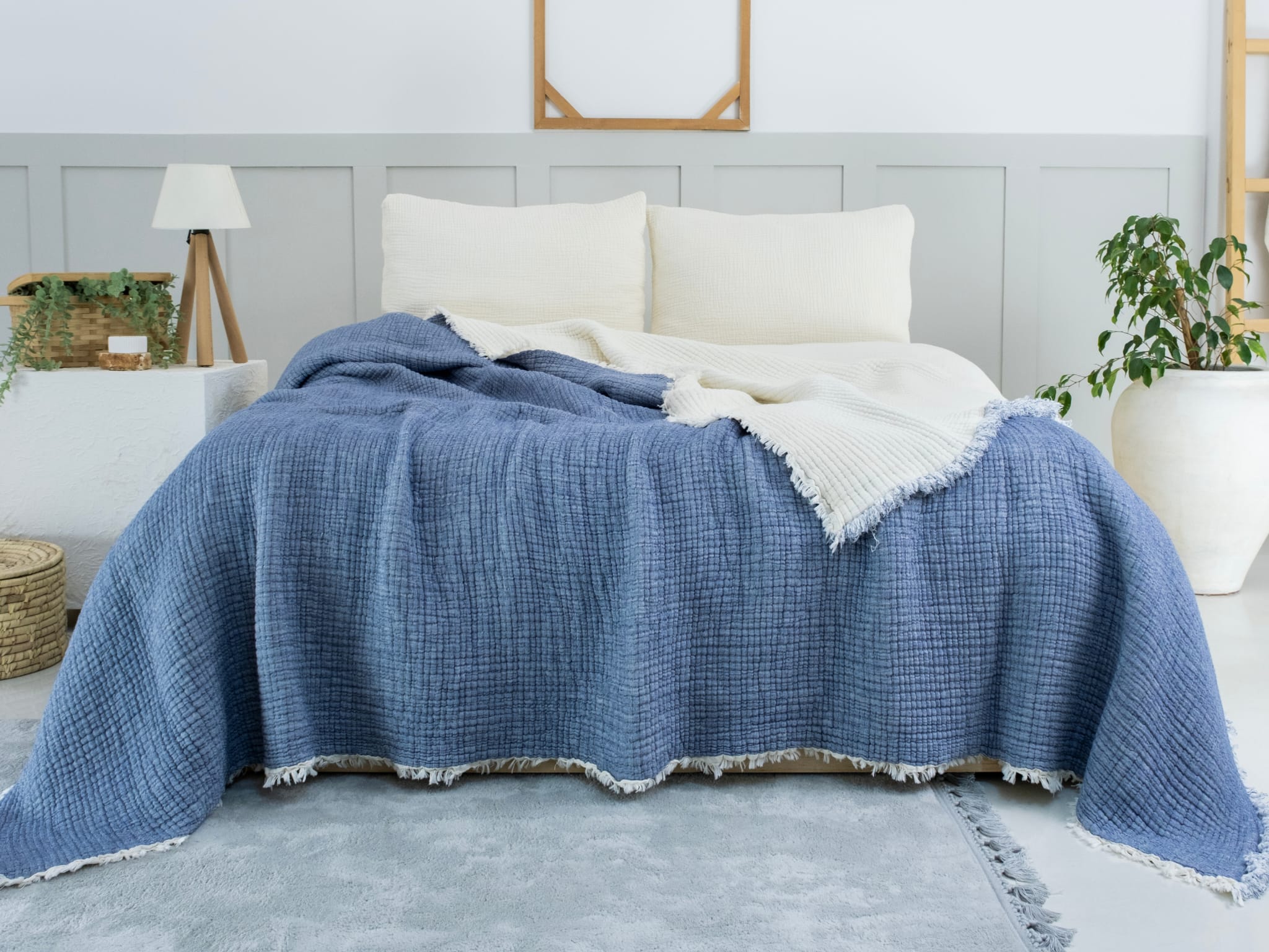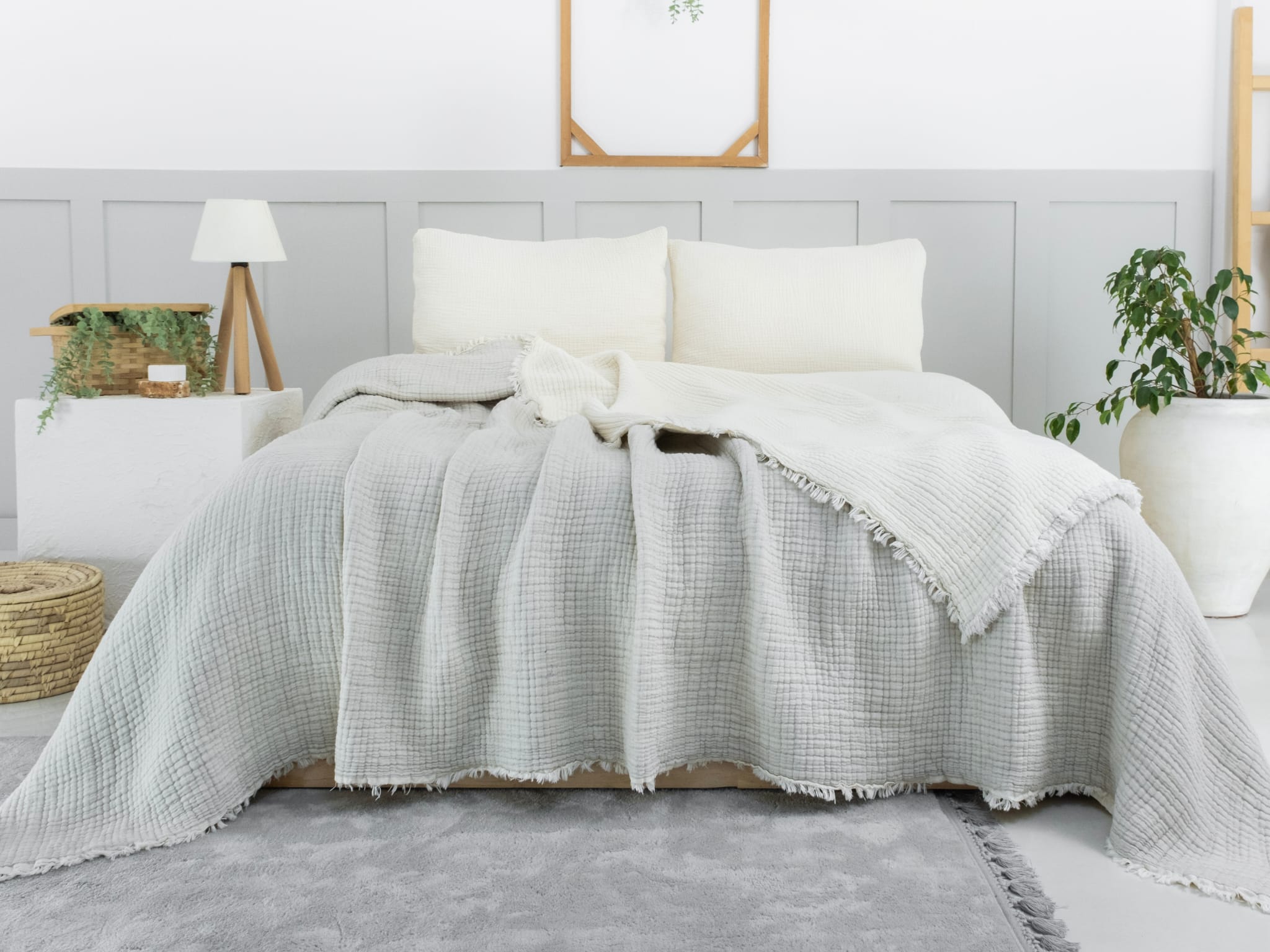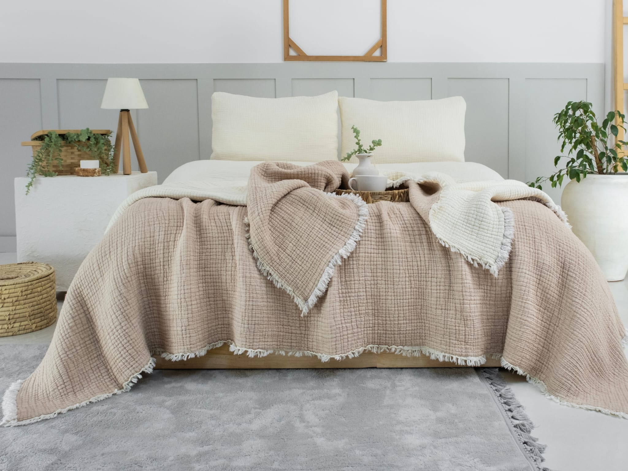 GKC Home 5 Katlı Müslin Yorgan, sade ve şık tasarımıyla yatak odanıza zarif bir dokunuş katarken, sunduğu doğal konfor ile uykunuzu derinleştirir. Uykunuzu önemseyin, kaliteden ödün vermeyin.